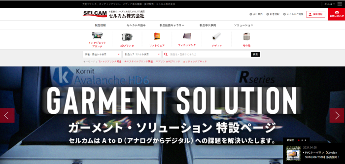 セルカムは、DTFプリンターの製造元ではなく販売業者です。大型インクジェットプリンターや3Dプリンターなど多種多彩な機種を扱っており、キャノン、エプソンといった大手から、国内外の新進気鋭メーカーまでカバーしています。ソフトウエアや各種消耗品なども揃えており、プリンター購入者の利便性を高めています。